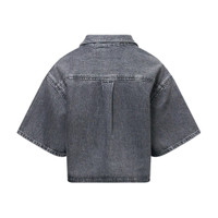 600077007GRY00L / 4DC1261973/00/022B - Snap button front closure - Dual chest patch pockets - Classic point collar - Short sleeves - Cropped hemline - Oversized relaxed fit - Washed cotton construction Alexander Wang Cropped Short Sleeve Shirt delivers contemporary edge with structured denim-inspired design and modern proportions. Crafted from washed cotton in sophisticated charcoal gray, featuring chest patch pockets and silver-toned snap button closure throughout. The cropped silhouette and oversized fit create a bold statement piece that defines Alexander Wang's urban aesthetic.