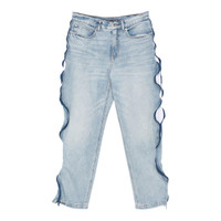 600071187DNM024 / 4DC3254882/DNM/470C - Light wash denim construction - Curved zipper details along outer seams - Five-pocket styling - Button and zip fly closure - Relaxed straight leg fit - Raw hem detailing - Premium metal hardware Alexander Wang Curved Zipper Pants deliver contemporary edge with architectural denim construction and signature hardware details. Crafted from premium light-wash denim featuring distinctive curved zipper seams along the outer legs for avant-garde street style. The innovative zipper placement and relaxed fit create a bold statement piece that defines modern luxury streetwear.