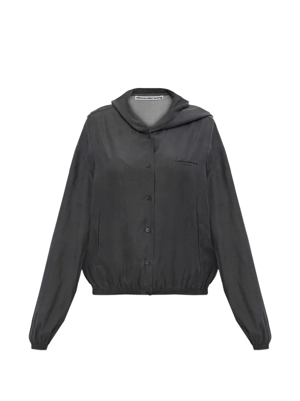 600076846GRY00L / 1WC1261200/00/022C - Button-front placket closure - Drawstring hood - Long sleeves with elasticated cuffs - Side seam pockets - Elasticated hem band - Relaxed fit - Lightweight drape fabric Alexander Wang Drapey Hoodie With Front Placket delivers contemporary luxury with relaxed sophistication and versatile styling options. Crafted from premium lightweight fabric in charcoal gray, featuring a unique button-front closure that transforms the classic hoodie silhouette. The signature Alexander Wang aesthetic combines streetwear elements with refined tailoring for effortless urban elegance.