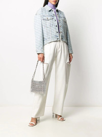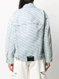 Alexander Wang Falling Back Logo Jacket In Denim Elevate your outerwear with Alexander Wang's Falling Back Logo Jacket In Denim. This statement piece features a unique, avant-garde design that seamlessly blends fashion and functionality. Crafted with premium materials, its contemporary silhouette and attention to detail make it a must-have for fashion-forward individuals. - Composition: 100% Cotton - Colour: Blue - All-over logo print - Faded effect - Spread collar - Buttoned cuffs
