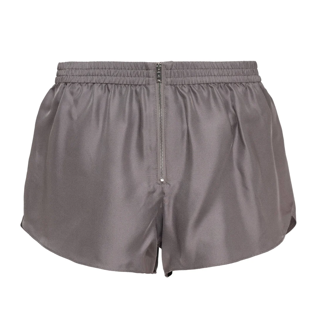 600083889STL00L / 1WC2264001/00/060A - High-rise elasticated waistband - Center front zip closure - Curved athletic hem - Lightweight technical fabric - Mini track short length - Relaxed athletic fit Alexander Wang High-Rise Mini Track Shorts delivers athletic-inspired luxury with contemporary urban styling. Crafted from lightweight technical fabric in sophisticated charcoal gray, featuring a flattering high-rise waist and curved hem silhouette. The streamlined design and premium construction create a versatile piece that transitions seamlessly from workout to streetwear.