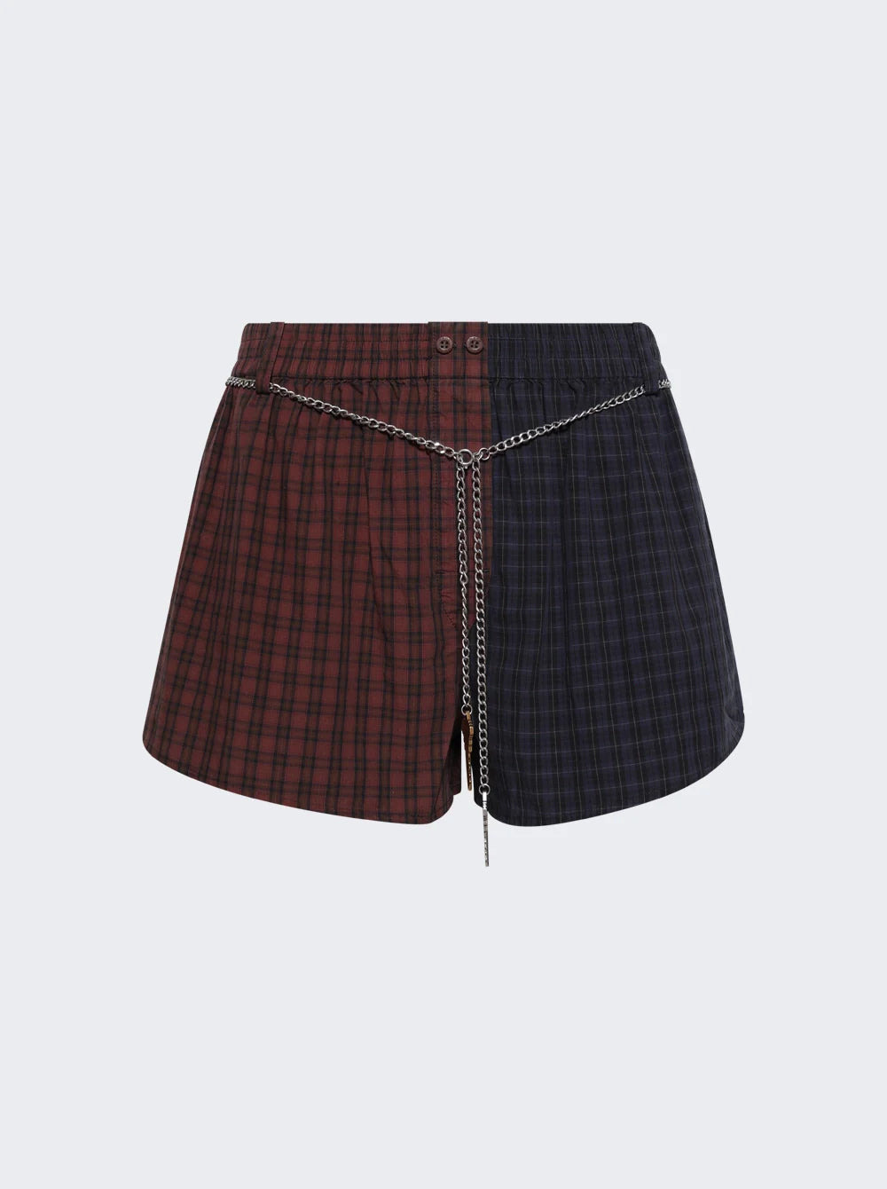 plaid chain-belt shorts
