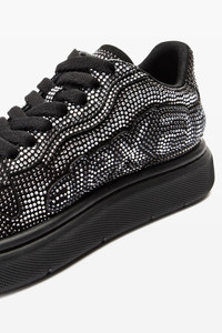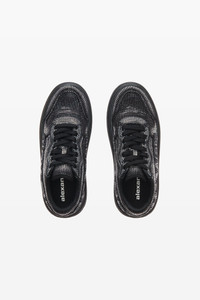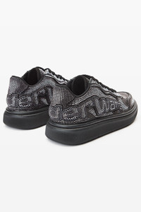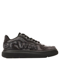 Alexander Wang Puff Crystal Hotfix Sueded Sneaker This grey suede logo puff sneakers feature an embossed logo that's been magnified with crystal heat treatment.