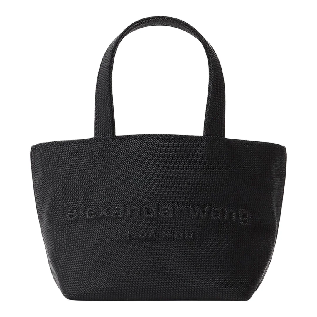 600056349BLK0OS / 20324T41T/BAGS/001 - Detachable adjustable shoulder strap - Dual top handles - Canvas construction - Alexander Wang embossed branding - Structured mini tote silhouette - Open top closure The Alexander Wang Punch Mini Tote With Strap delivers urban sophistication with versatile carrying options. Crafted from durable black canvas with structured construction, featuring the brand's signature minimalist aesthetic. The compact silhouette and detachable strap provide both handheld and crossbody functionality for modern city living.