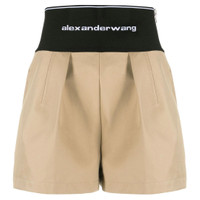 Alexander Wang Safari Short In Cotton Tailoring This Alexander Wang pleated shorts are crafted from soft cotton for a relaxed fit and detailed with a logo at the waist.