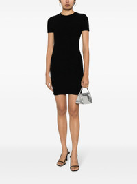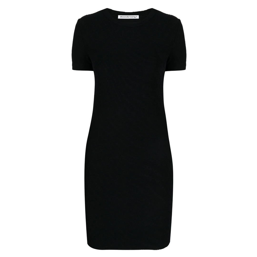 T By Alexander Wang Crew Neck Short Sleeve Dress Black crew neck short sleeve mini dress in stretch logo jacquard.