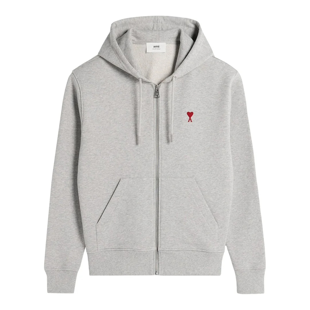 300042618MGH-MM / C4BFUSW435.730/00/0951 - Full zip front closure - Adjustable drawstring hood - Front kangaroo pockets - Ribbed cuffs and hem - Embroidered Ami de Coeur heart logo - Cotton blend fleece construction - Relaxed fit The AMI De Coeur Hoodie delivers Parisian streetwear elegance with the brand's iconic heart logo embroidery. Crafted from premium cotton blend fleece in sophisticated heather grey, featuring a comfortable relaxed fit and soft brushed interior. The signature red Ami de Coeur emblem adds a subtle romantic touch to this contemporary wardrobe essential.