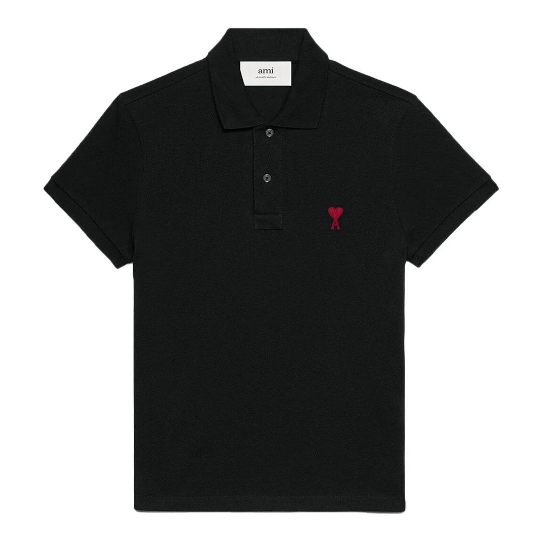 AMI Paris Ami De Coeur Polo Shirt Step into the timeless elegance of AMI Paris with the Ami De Coeur Polo Shirt ?a classic silhouette imbued with sophistication through a striking logo meticulously embroidered at the chest. This piece seamlessly marries heritage and modernity, making it a testament to the brand's commitment to refined style. - 100% Organic Cotton - Black - Polo collar - Short sleeves - Embroidered logo at the chest - Front button placket - Straight hem - Hem hits at hips - Regular fit