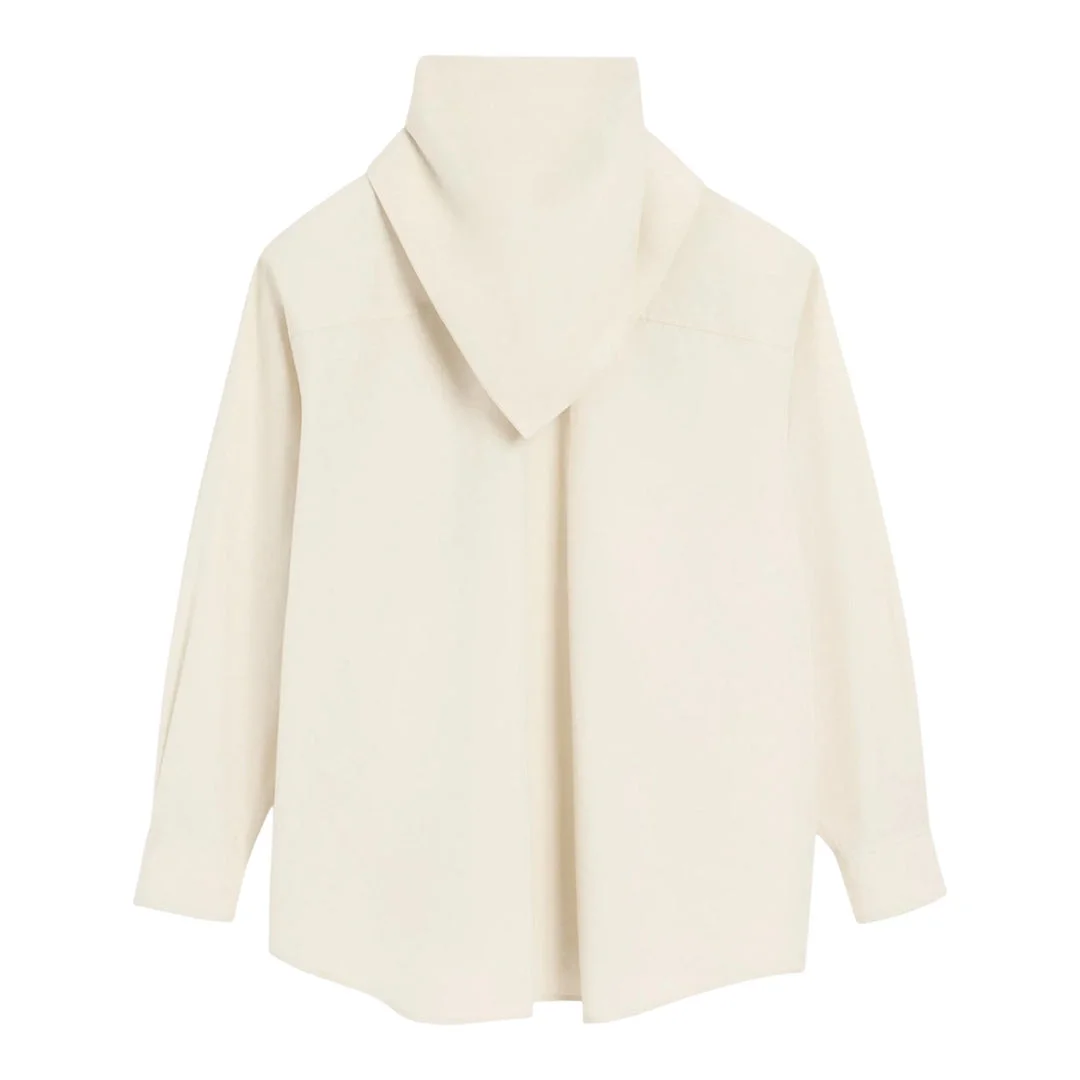 600072211OWT00S / UTP801.CO0063/00/185 - Draped asymmetrical collar design - Long sleeves with fitted cuffs - Relaxed fit through body - Premium lightweight woven construction - Hidden button closure - Curved hemline The AMI Bandana Blouse delivers contemporary French sophistication with relaxed tailoring and refined detailing. Crafted from premium lightweight woven fabric in classic cream, featuring an innovative draped collar design that creates elegant asymmetrical lines. The signature AMI aesthetic combines Parisian effortlessness with modern femininity for versatile styling.