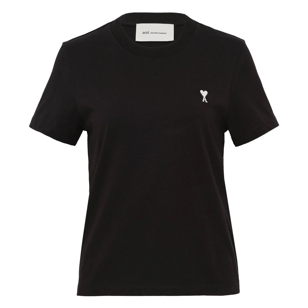 600072122BLK00L / FTS347.724/00/045 - Embroidered AMI heart logo on chest - Cropped hem length - Short sleeves - Crew neckline - Premium cotton jersey construction - Relaxed fit AMI Black ADC Crop T-Shirt delivers Parisian streetwear sophistication with a contemporary cropped silhouette. Crafted from premium cotton jersey in classic black with the signature AMI heart logo embroidered on the chest. The relaxed fit and cropped length create a modern casual essential for effortless French-inspired styling.