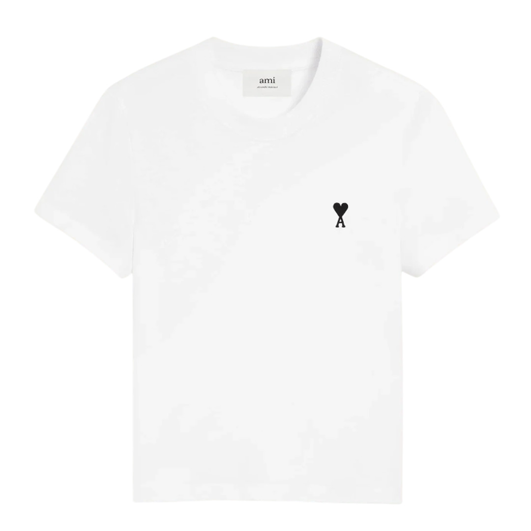 WHITE COTTON CROPPED AMI DE COEUR T-SHIRT