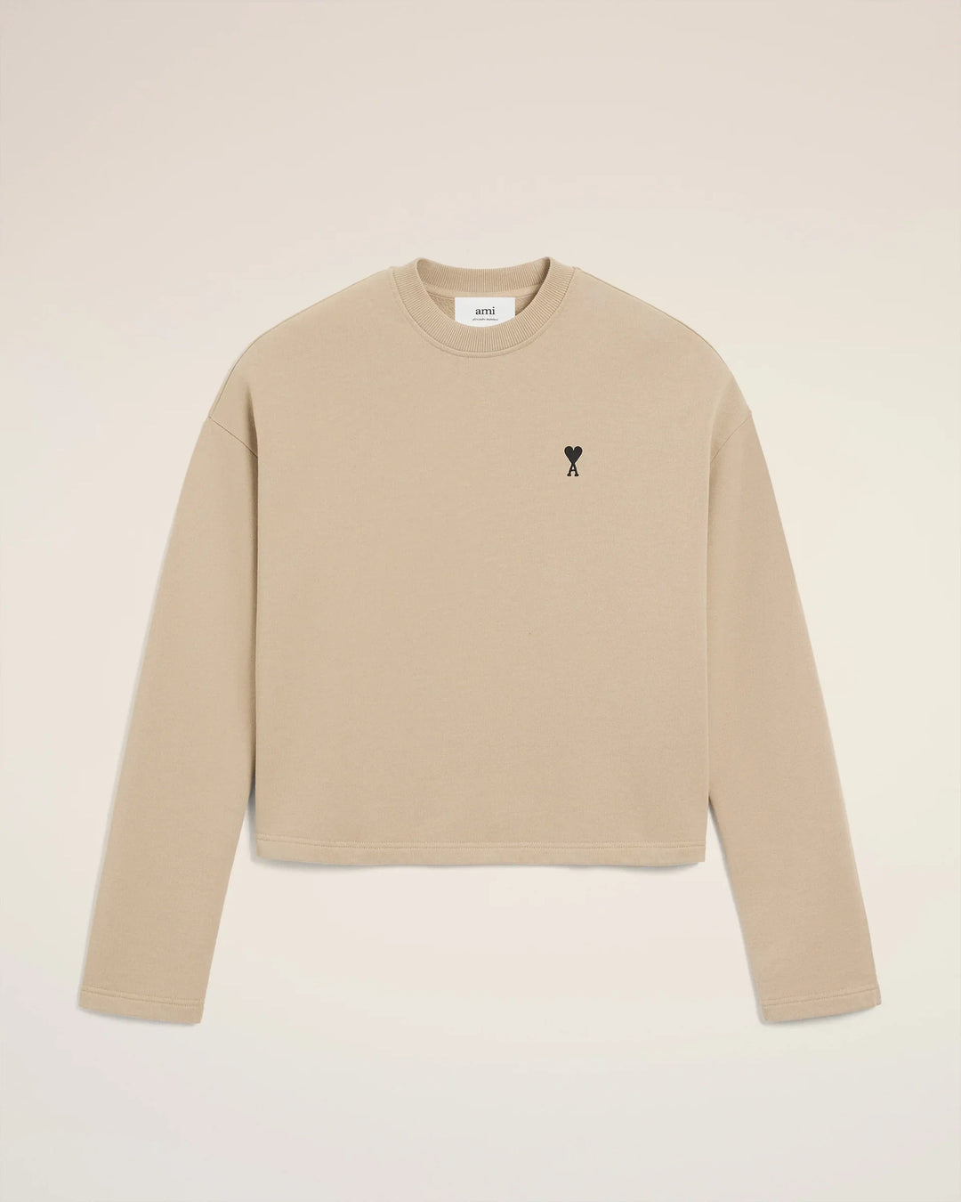 BEIGE COTTON CONTRASTED AMI DE COEUR SWEATSHIRT