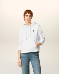 WHITE COTTON CONTRASTED AMI DE COEUR HOODIE