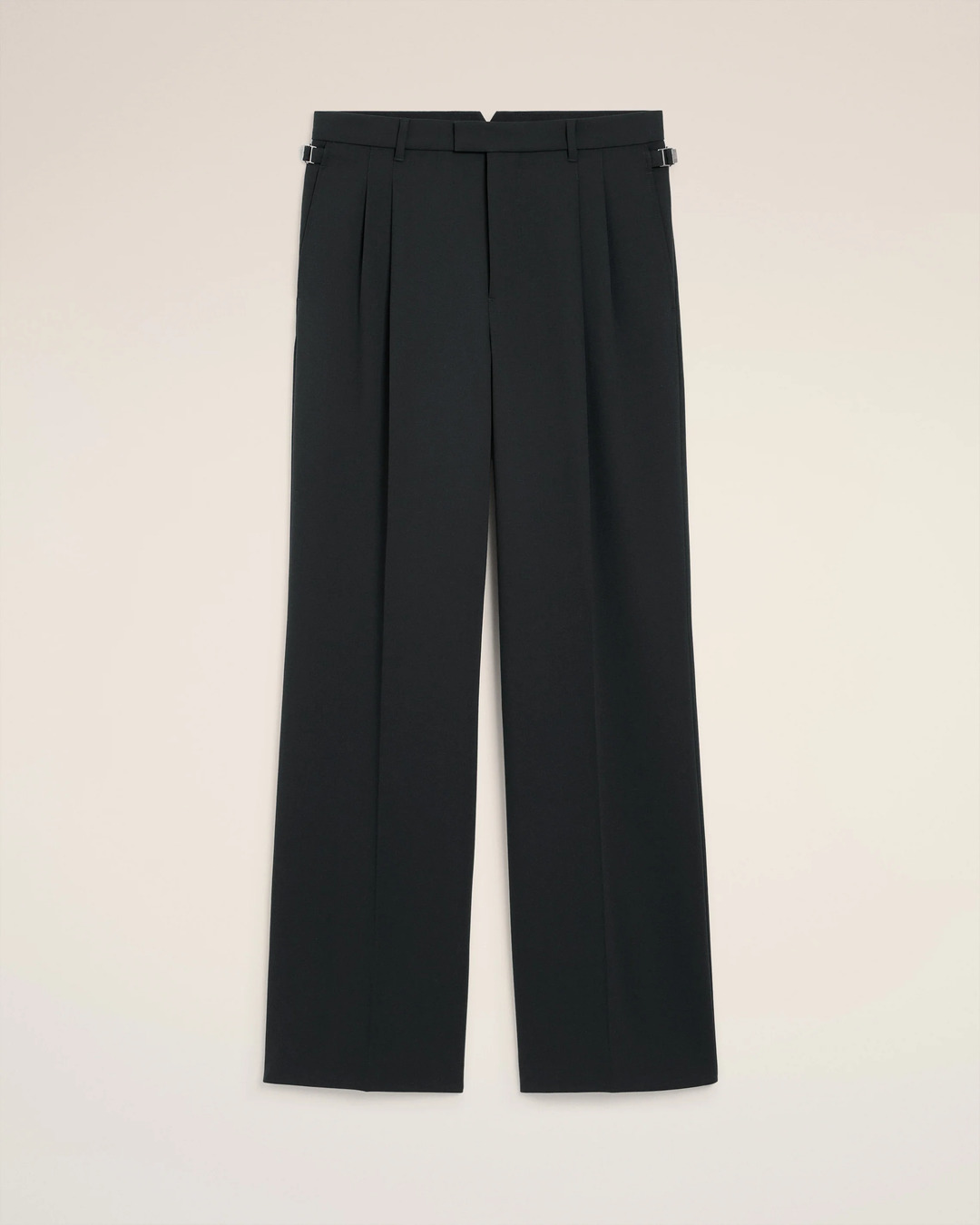 BLACK WOOL LOW WAIST WIDE TROUSERS