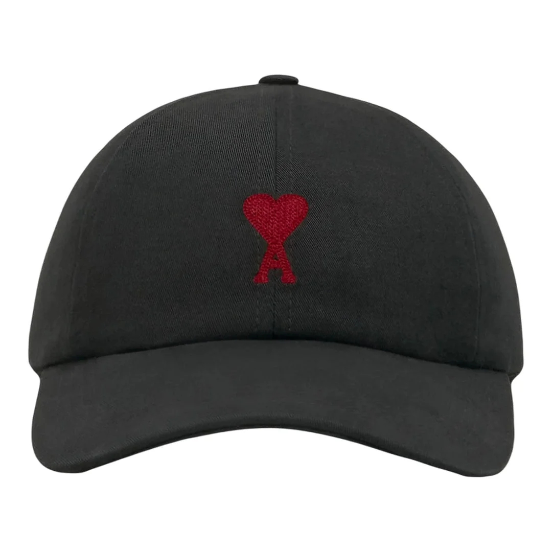 600047814BLK0OS / BFUCP006.AW0041/00/001 AMI Red Ami De Coeur Embroidery Cap - Unisex product - "ami" signature adjustment buckle - Adjustable strap - Cotton lining - Red Ami de Coeur chain stitch embroidery - One-size only, 57 cm, adjustable at the back - Made in Portugal (with love) - Main Material : 100% Cotton - Do not wash - Chlorine prohibited - Do not tumble dry - Do not iron - Do not dry clean