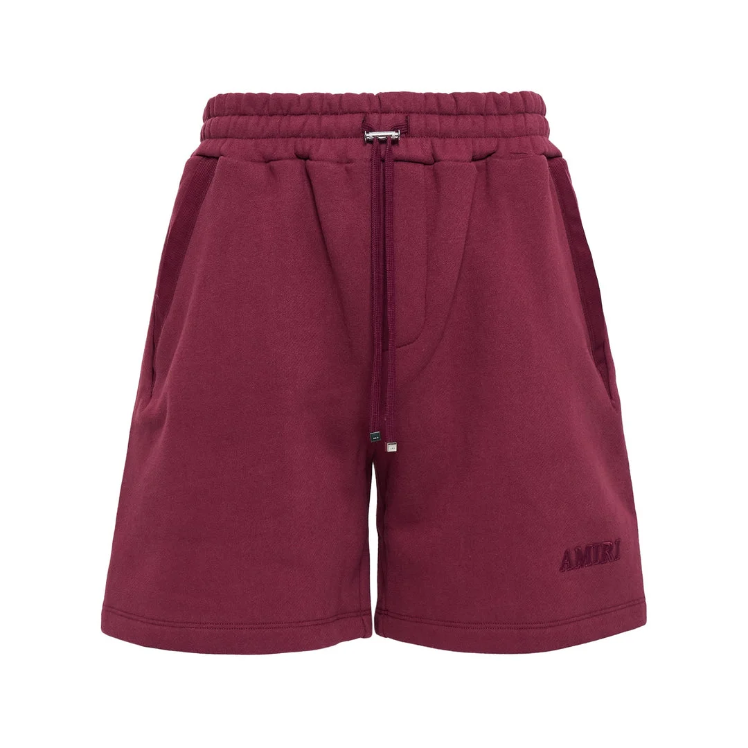 600077771BUR00L / AMBMSO1034/00/584 - French terry cotton construction - Elasticated waistband with drawstring - Side seam pockets - Embossed AMIRI branding - Relaxed athletic fit - Rolled hem detailing AMIRI Sweatshorts deliver luxury streetwear comfort with premium athletic construction and contemporary design. Crafted from soft French terry cotton in rich burgundy, featuring an elasticated waistband with adjustable drawstring closure. The relaxed fit and embossed brand detailing showcase AMIRI's signature blend of high-end craftsmanship and urban aesthetic.