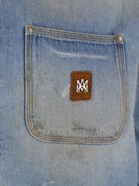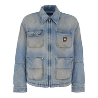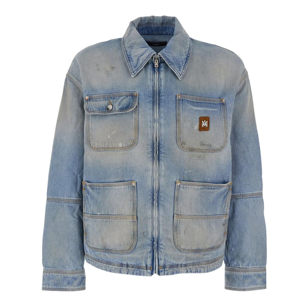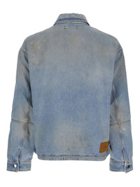 Logo-Appliquéd Distressed Denim Jacket Blue