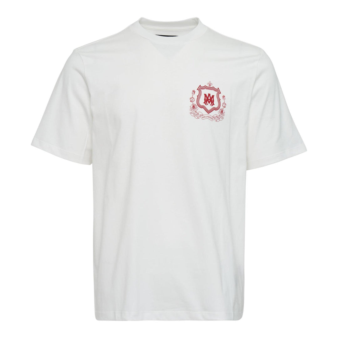 600069106WHT00M / AMJYTE1249/00/127 - Embroidered MA crest logo on chest - Crew neck construction - Short sleeves - Soft cotton jersey fabric - Relaxed fit - Vintage-inspired detailing The AMIRI MA Crest Tee delivers premium streetwear with signature brand heritage detailing. Crafted from soft cotton jersey in classic white, featuring an embroidered red MA crest logo on the chest. The relaxed fit and vintage-inspired graphics showcase AMIRI's rock-and-roll luxury aesthetic.