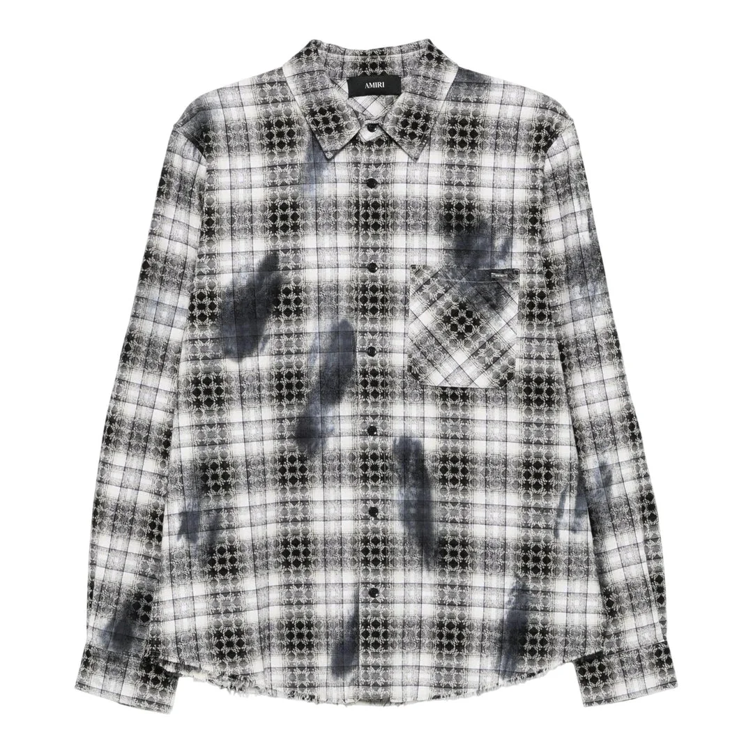 600068912BLK0XL / AMSTFL1014/00/001 - Bleach-distressed plaid pattern - Classic point collar - Long sleeves with button cuffs - Front button placket - Single chest pocket - Premium flannel cotton construction - Regular fit AMIRI Quad Bleach Flannel delivers luxury grunge aesthetics with signature bleach-distressed treatment and precision tailoring. Crafted from premium flannel cotton with strategic bleaching effects that create unique tonal variations across the plaid pattern. The structured collar and chest pocket showcase AMIRI's elevated approach to streetwear-inspired luxury pieces.