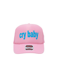 600075137PNK0OS / AWAW250130/00/CRY BABY - Cotton twill front panels - Mesh back panels for breathability - Contrasting blue embroidered 'cry baby' text - Adjustable snapback closure - Classic trucker cap silhouette - Curved visor The Ashley Williams Cry Baby Cap delivers bold streetwear attitude with playful typography and contemporary design. Crafted from durable cotton twill in vibrant pink with contrasting blue embroidered lettering across the front panel. The classic trucker-style construction and mesh back panels create a statement accessory that embodies the brand's irreverent aesthetic.