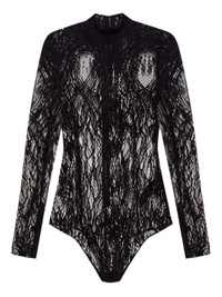 Balmain Long Sleeve Turtleneck Lace Bodysuit