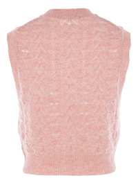 600071639PNK00S / 3.25KNI53003 BRISA/00/SOFT PIN - Mock turtleneck collar - Sleeveless design - All-over lace stitch pattern - Ribbed collar and hem - Soft knit construction - Relaxed fit Cecilie Bahnsen Lace Stitch Vest delivers romantic femininity with contemporary sculptural design. Crafted from soft knit fabric in dusty rose pink, featuring an intricate lace stitch pattern throughout and ribbed mock neckline. The sleeveless silhouette and signature feminine aesthetic create an elegant layering piece for modern wardrobes.
