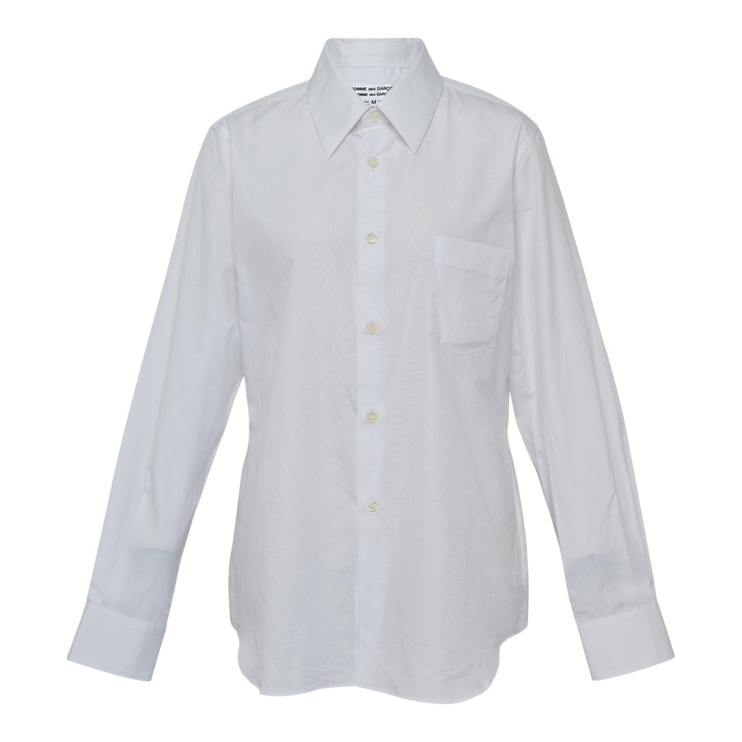600067296WHT0XS / RZ-B015/051/1/TEIBAN - Classic point collar - Long sleeves with button cuffs - Button-front closure - Chest pocket detail - Premium cotton broadcloth construction - Relaxed fit COMME des GARCONS CDG Teiban Cotton Broad Blouse delivers minimalist Japanese design with contemporary tailoring and structured silhouette. Crafted from premium cotton broadcloth in crisp white, featuring classic collar construction and clean button-front closure. The signature CDG aesthetic and refined proportions create a versatile wardrobe essential with avant-garde sensibility.
