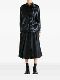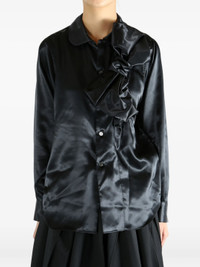 COMME des GARCONS Polyester Satin Shirt delivers avant-garde luxury with architectural construction and sophisticated craftsmanship. Made from premium polyester satin in rich black, featuring dramatic side ruffle detailing and structured silhouette. The brand's signature deconstructed aesthetic and asymmetrical design create a bold statement piece for contemporary wardrobes.