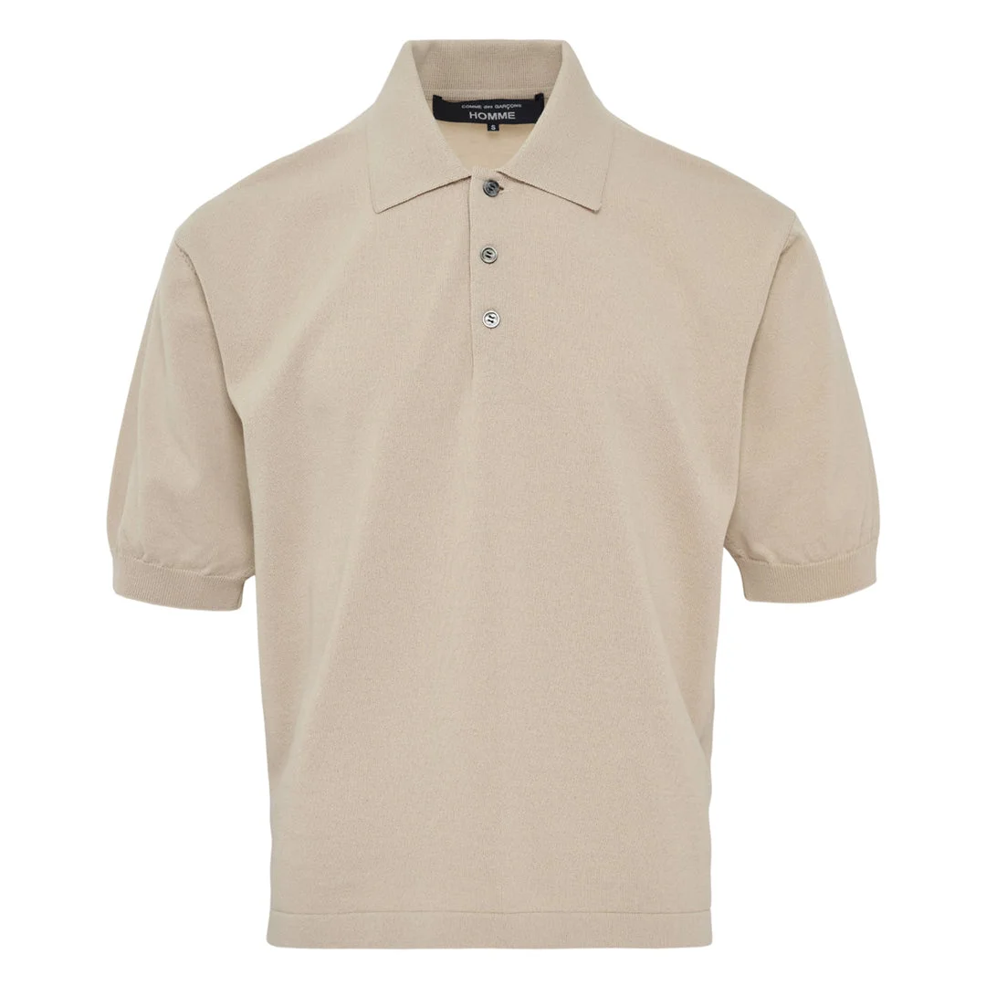 600078933BGE00L / HQ-N004/051/3/1A - Cotton-wool blend knit construction - Three-button placket - Ribbed collar and cuffs - Short sleeves - Regular fit - Tonal button detailing COMME des GARCONS HOMME Cotton Wool Blend Polo delivers minimalist luxury with premium fabric construction and refined tailoring. Crafted from a sophisticated cotton-wool blend in neutral beige, featuring a classic three-button placket and ribbed collar. The premium knit construction and signature HOMME aesthetic create a versatile piece for elevated casual wardrobes.