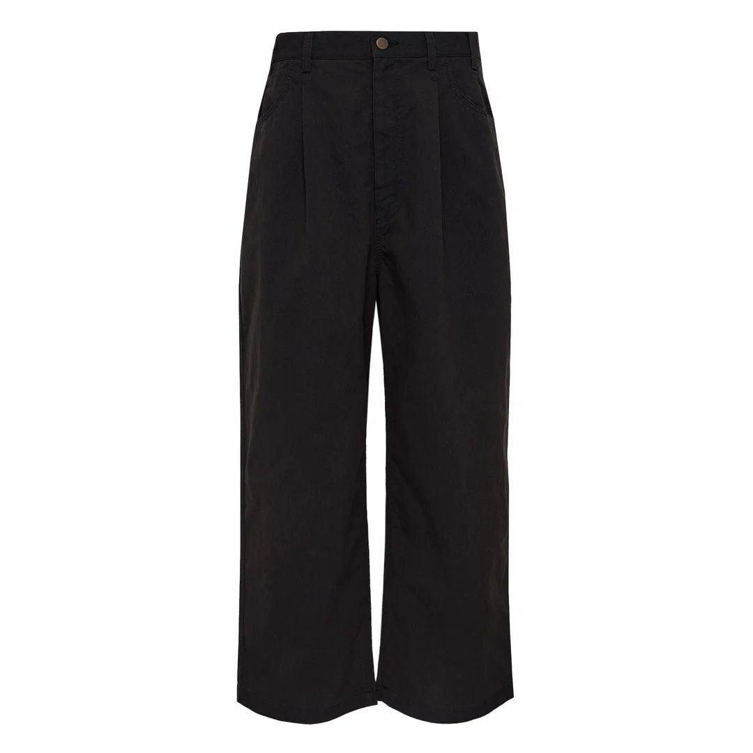 600078935BRN00L / HQ-P003/051/2/1A - High-waisted design with pleated front - Wide-leg silhouette - Technical nylon construction - Button closure with zip fly - Front slash pockets - Relaxed fit through hip and thigh - Cropped ankle length COMME des GARCONS HOMME High-Waisted Nylon Pants deliver avant-garde tailoring with contemporary wide-leg silhouette. Crafted from technical nylon in classic black, featuring an elevated waistline and structured pleating for architectural drape. The minimalist design and premium construction embody the brand's signature deconstructed aesthetic.