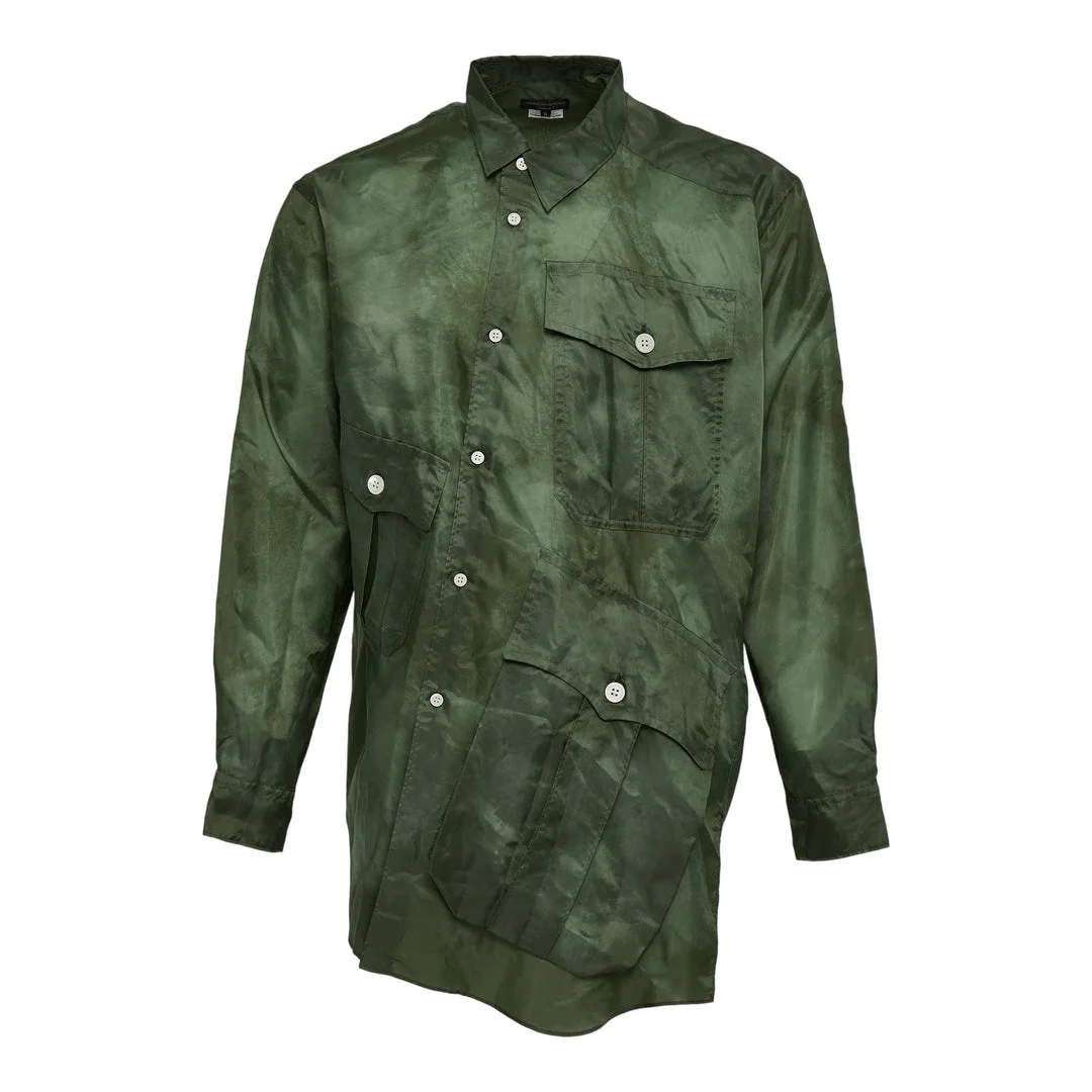 600073586KHA00S / PP-B006/051/1/1A - Asymmetrical front button closure - Multiple chest pockets with button flaps - Classic point collar - Long sleeves with button cuffs - Cluster stripe pattern throughout - Lightweight polyester construction - Relaxed oversized fit - Deconstructed design elements COMME des GARCONS HOMME PLUS Polyester Cluster Stripe Long Sleeve Shirt delivers avant-garde design with experimental construction and asymmetrical detailing. Crafted from lightweight polyester in deep forest green with distinctive cluster stripe patterning and unconventional pocket placement throughout. The deconstructed silhouette and signature CDG aesthetic create a bold statement piece for contemporary wardrobes.