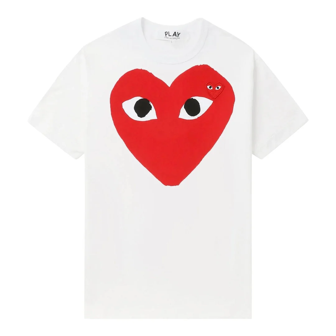 600061934WHTXXS / A-AX-T026/051/1 - Iconic red heart with eyes graphic - Small red heart emblem detail - Premium cotton construction - Unisex sizing - Classic crew neck - Short sleeves - Relaxed fit COMME des GARCONS PLAY Big Red Heart Tee delivers iconic streetwear style with the brand's signature heart emblem design. Crafted from premium cotton in classic white, featuring the distinctive red heart with eyes graphic and small emblem detail. The unisex fit and timeless PLAY aesthetic create a versatile wardrobe essential for contemporary casual wear.