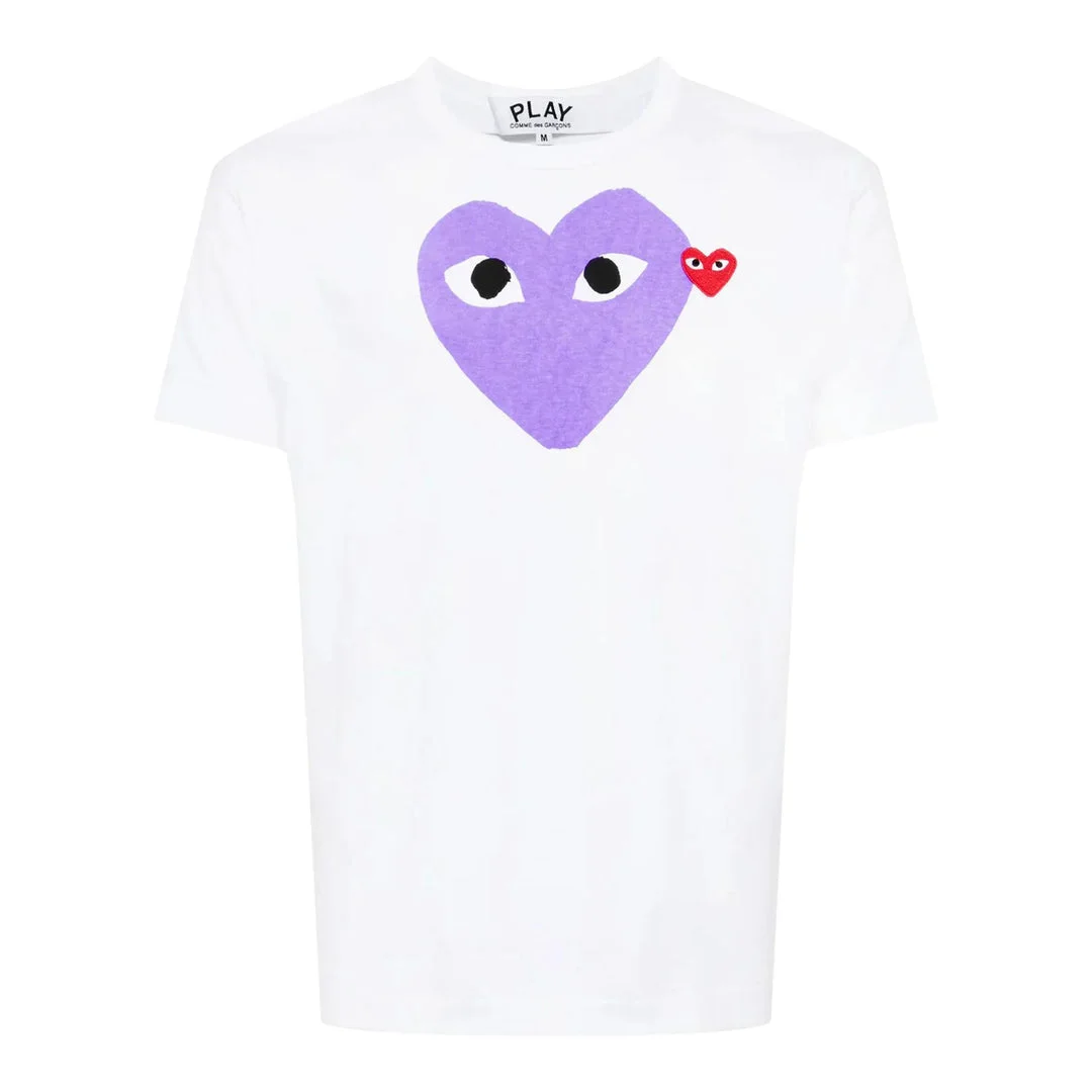 600050229PURXXS / A-AX-T106/051/1 - Premium cotton construction - Iconic PLAY heart logo with eyes - Unisex cut and fit - Crew neckline - Short sleeves - Straight hem - Regular fit COMME des GARCONS PLAY Candy Heart Tee delivers Japanese avant-garde streetwear with playful sophistication. Crafted from premium cotton in crisp white, featuring the iconic purple heart logo with signature CDG eyes alongside a smaller red heart accent. The unisex design and comfortable fit create a versatile statement piece that embodies Rei Kawakubo's innovative aesthetic.