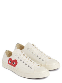 COMME des GARCONS PLAY Converse Converse Peek-A-Boo Heart Low Cut Sneakers White These COMME des GARCONS PLAY x Converse sneakers feature a premium canvas upper with an oversized, iconic CDG PLAY heart-and-eyes graphic, and ortholite insoles for comfort. Please choose your usual size. Note that this product offers two equivalent sizes, hence the different product codes. That means whether you select size 3 or size 3 (Three), you will receive the same item size (3). - Upper: Cotton / Sole: Rubber - White - Low cut - Front lace fastening - CDG PLAY heart-and-eyes graphic - Rubber outsole and toecap