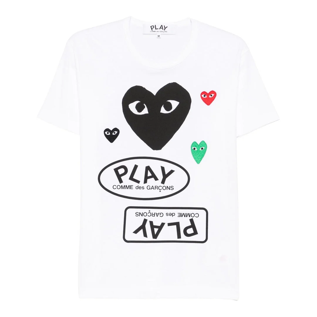 300040490WHT-XS / BSA-AX-T282/051/1 - Premium cotton jersey construction - Classic crew neck - Short sleeves - Multiple CDG PLAY heart logos - Unisex relaxed fit - Signature brand typography COMME des GARCONS PLAY Multi Logo Black Heart Tee delivers iconic Japanese streetwear with playful signature motifs. Crafted from premium cotton jersey in crisp white, featuring the brand's distinctive heart eyes logos in black, red, and green colorways. The unisex fit and signature CDG PLAY branding create a versatile statement piece for contemporary wardrobes.