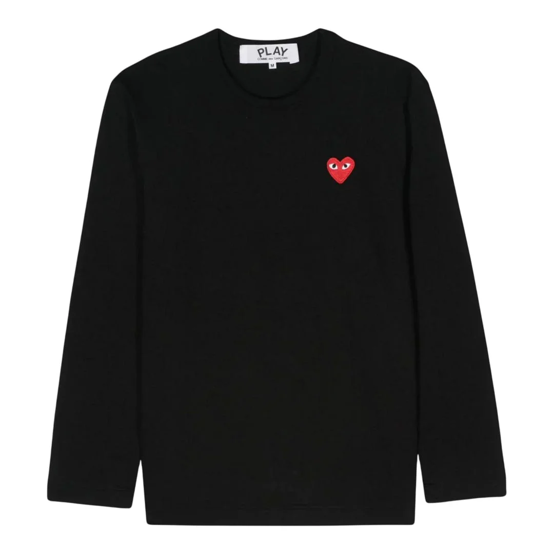 600067434BLKXXS / A-AX-T118/051/1 - Signature red heart emblem on chest - Long sleeve construction - Crew neck design - Unisex sizing and fit - Premium cotton fabrication - Ribbed collar and cuffs COMME des GARCONS PLAY Red Emblem Tee delivers iconic Japanese streetwear with the brand's signature heart logo design. Crafted from premium cotton in classic black, featuring the distinctive red heart emblem with eyes positioned on the chest. The unisex cut and timeless CDG PLAY aesthetic create a versatile wardrobe staple for contemporary style.
