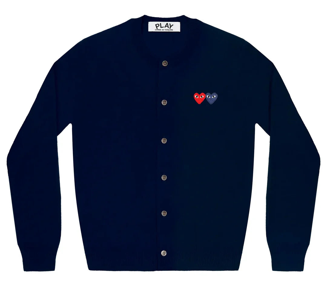 COMME des GARCONS PLAY Round-Neck Double Burgundy Emblem Cardigan Unisex