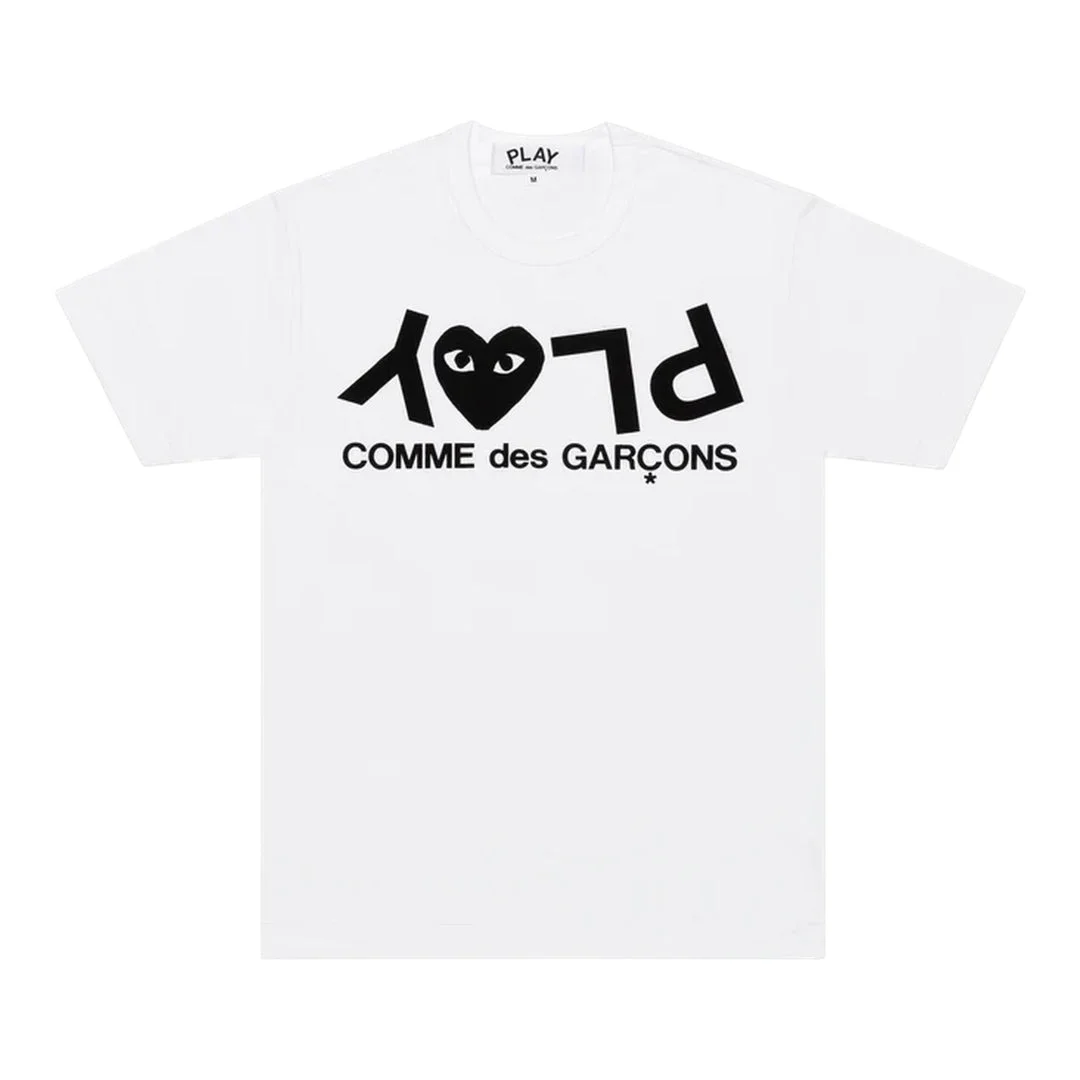600052940WHTXXS / A-AX-T068/051/1 - 100% premium cotton jersey construction - Inverted PLAY logo print - Iconic heart with eyes emblem - Short sleeves - Crew neckline - Unisex relaxed fit - Machine washable COMME des GARCONS PLAY Upside Down Word Tee delivers playful avant-garde design with signature brand iconography. Crafted from premium cotton jersey in crisp white, featuring the iconic inverted PLAY logo with heart emblem across the chest. The subversive graphic treatment and quality construction exemplify Rei Kawakubo's distinctive approach to contemporary streetwear.