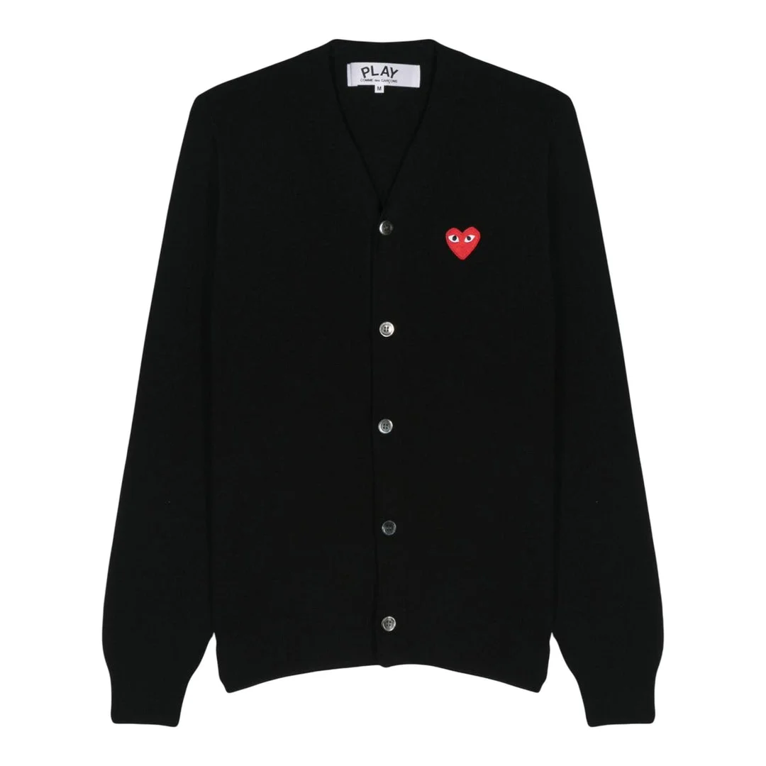 600052932BLKXXS / A-AX-N008/051/1 - Button-front closure with five buttons - Classic V-neckline - Iconic red heart emblem on chest - Long sleeves with ribbed cuffs - Ribbed hem and neckline - Premium wool knit construction - Unisex relaxed fit COMME des GARCONS PLAY V-Neck Cardigan delivers minimalist Japanese design with the iconic red heart emblem. Crafted from premium wool knit in classic black, featuring clean button-front closure and ribbed detailing at cuffs and hem. The signature red heart logo with eyes creates an instantly recognizable statement piece that defines contemporary streetwear luxury.