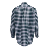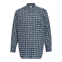 600073548GRN00M / FP-B070/051/3/3A - Premium cotton poplin construction - Navy and forest green check pattern - Classic point collar - Full button-down placket - Left chest pocket - Long sleeves with button cuffs - Wide relaxed fit - Curved hem COMME des GARCONS SHIRT Cotton Check Poplin Wide Class Shirt delivers avant-garde tailoring with relaxed contemporary silhouette. Crafted from premium cotton poplin in navy and forest green check pattern, featuring the brand's signature oversized proportions. The structured poplin weave and classic button-down construction create a sophisticated statement piece with Japanese minimalist aesthetic.
