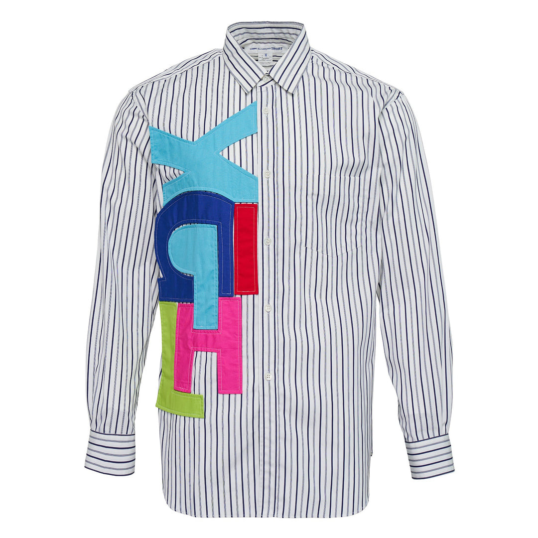 COMME des GARCONS SHIRT Yarn Dyed Cotton Stripe Slogan Shirt