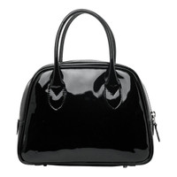 600025738BLK0OS / KZ-K279/051/1 - High-gloss black patent leather construction - Dual top handles with reinforced stitching - Zip-around closure - Silver-tone metal hardware - Protective metal feet - Geometric trapezoid silhouette - Extra small compact size - Structured construction maintains shape COMME des GARCONS Top Handle Patent Trapezoid Extra Small delivers avant-garde luxury in a compact architectural silhouette. Crafted from high-gloss black patent leather with meticulous stitching details and silver-tone hardware throughout. The geometric trapezoid shape and signature minimalist aesthetic create a statement accessory that embodies the brand's innovative design philosophy.