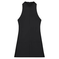 600066284BLK038 / PS25-VESCRO456PL0007/00/9999 - High mock neckline with back zip closure - Sleeveless design - Two front patch pockets - A-line silhouette - Structured twill construction - Above-knee length - Fitted bodice with flared hem The Courreges 2-Pocket Twill A-Line Dress delivers modern minimalist sophistication with architectural precision and clean lines. Crafted from structured twill fabric in classic black, featuring the brand's signature sleeveless silhouette with high neckline and functional pocket details. The streamlined A-line cut and geometric construction embody Courreges' iconic space-age aesthetic for contemporary wardrobes.
