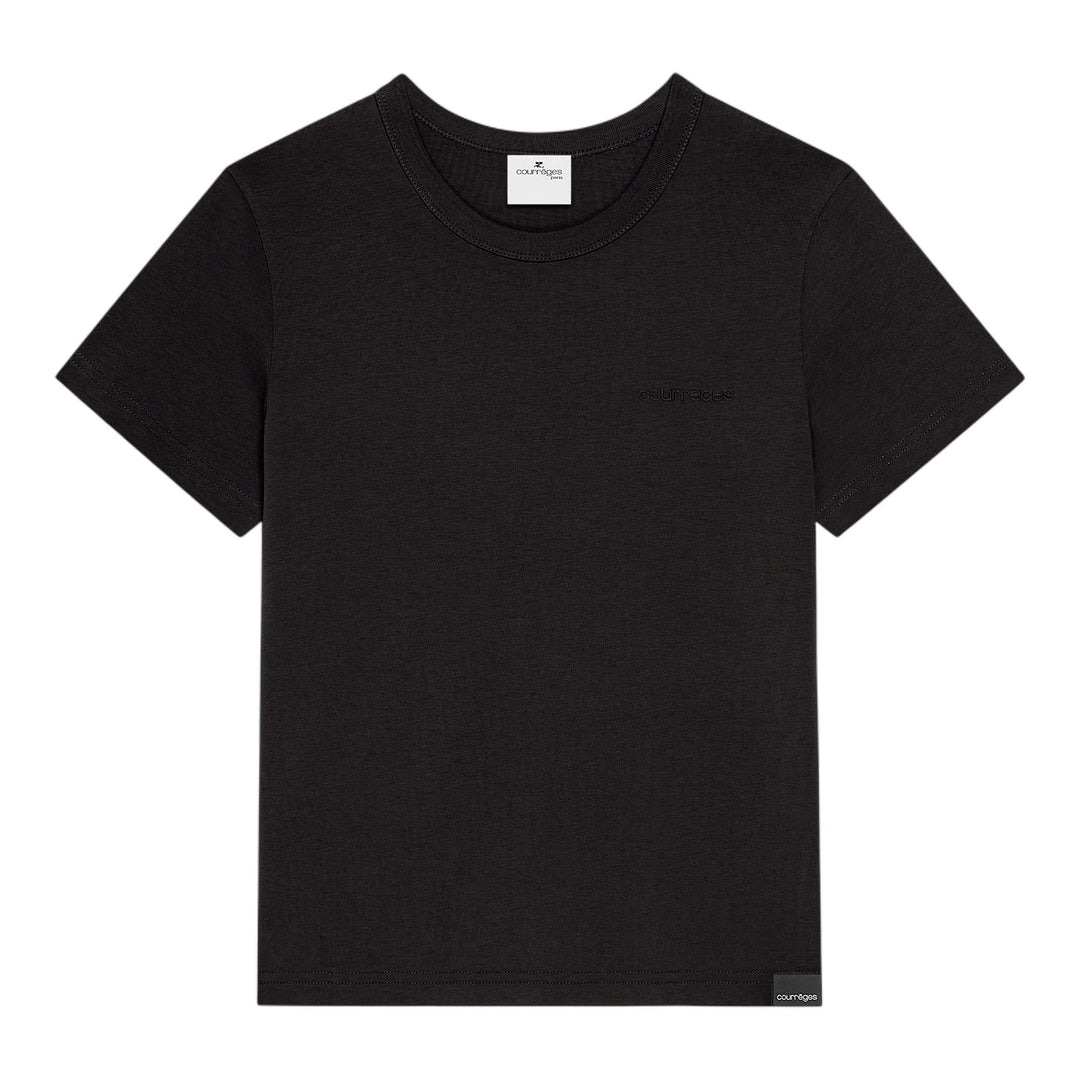 300049480BLK-XS / P5325JTS217JS0233/00/9999 - Premium cotton jersey construction - Tonal embroidered brand detail - Crew neck design - Short sleeves - Regular fit - French seam construction Courreges Embroidered T-Shirt delivers modern French luxury with minimalist sophistication and architectural precision. Crafted from premium cotton jersey in classic black, featuring subtle tonal embroidery that reflects the brand's futuristic heritage. The clean-cut silhouette and refined construction create an essential foundation piece for contemporary wardrobes.