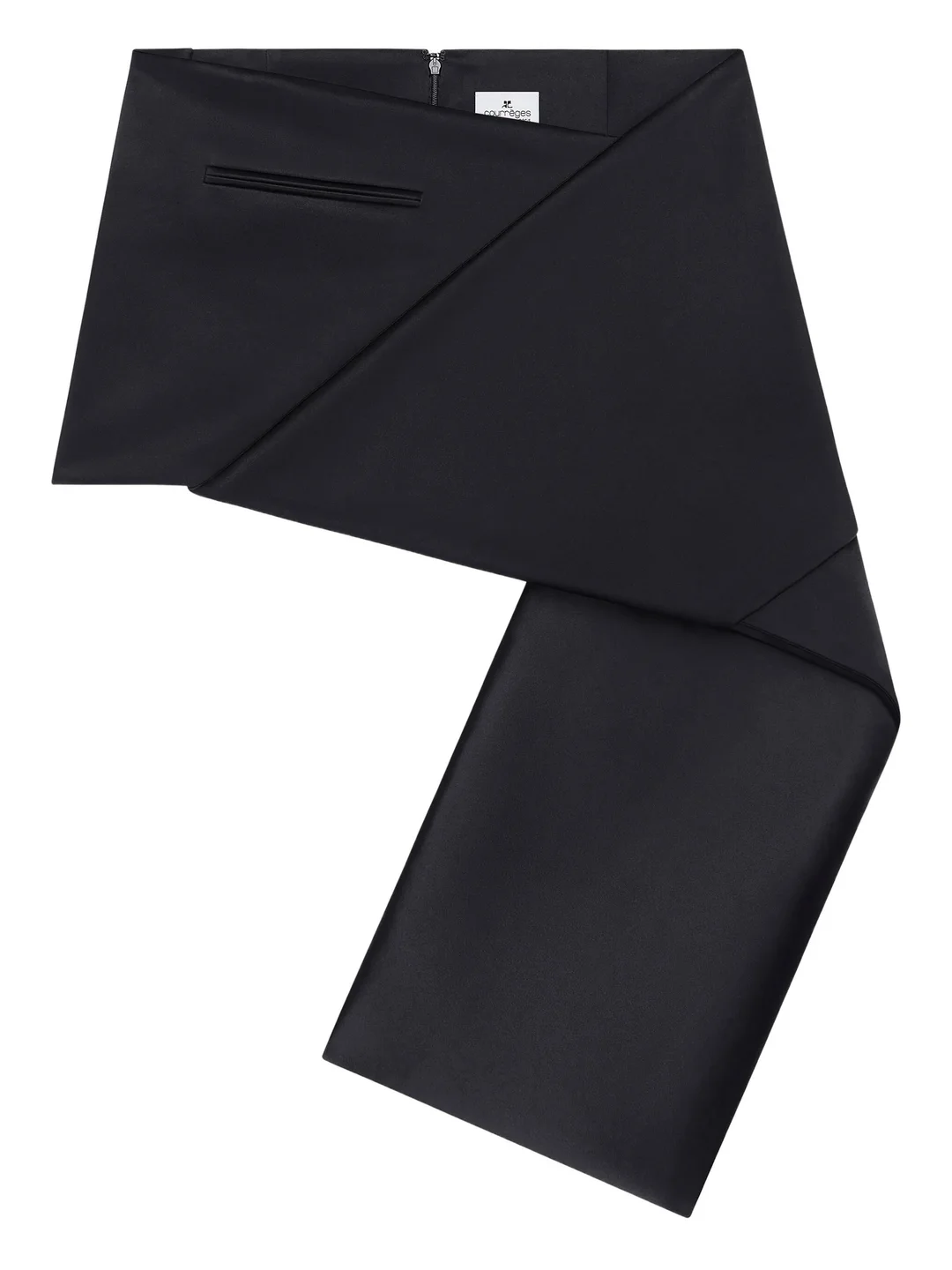 The Courreges Folded Satin Mini Skirt delivers modern French sophistication with avant-garde architectural design. Crafted from luxurious black satin with innovative folded construction that creates dynamic draping and asymmetrical silhouette. The signature geometric design and contemporary tailoring showcase Courreges' pioneering approach to futuristic fashion.