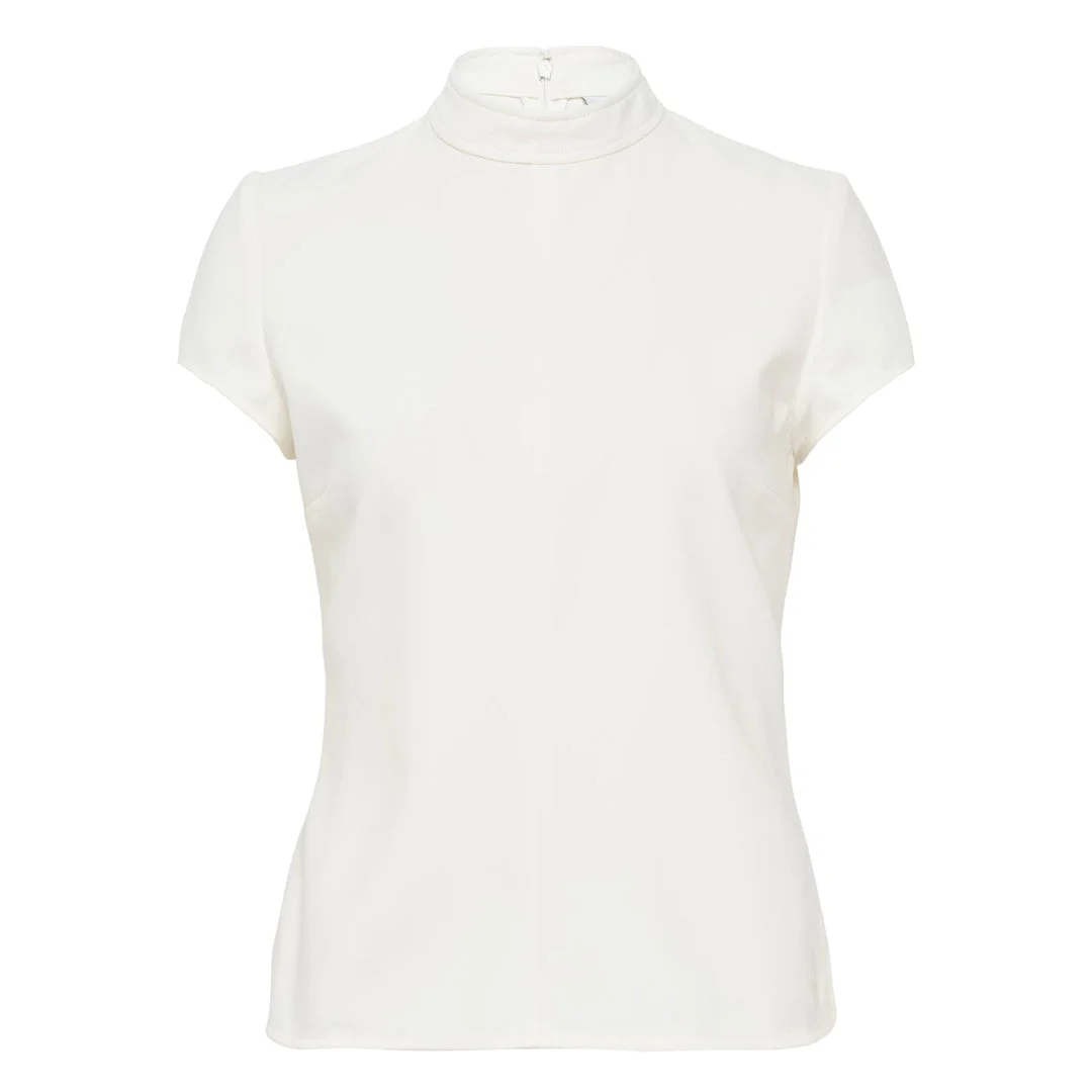 600079356WHT034 / 126CTO472PL0159/00/7055 - High mock turtleneck - Short sleeves with structured fit - Premium crepe fabric construction - Back button closure - Clean minimalist design - Tailored silhouette The Courreges Heritage Crepe Top delivers modern French elegance with architectural precision and timeless sophistication. Crafted from premium crepe fabric in crisp white, featuring the brand's signature minimalist aesthetic with clean lines and structured silhouette. The refined construction and contemporary cut create a versatile foundation piece for elevated everyday dressing.