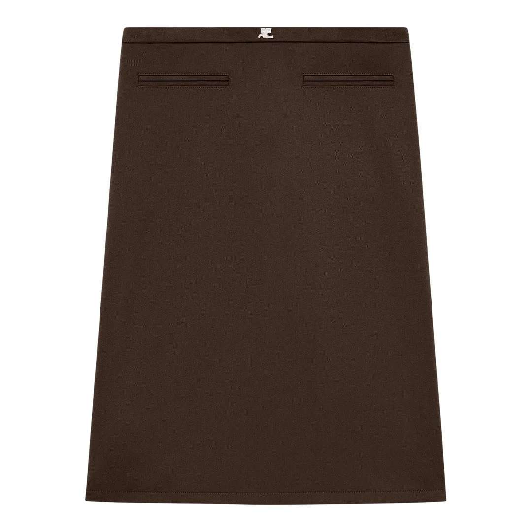 600073060BRN0XS / PF25-325JJU296JS0250/00/1983 - Interlock cotton construction - High waistband with branded tab closure - Twin back welt pockets - Knee-length cut - Straight silhouette - Premium topstitching details Courreges Interlock Tracksuit Skirt delivers modern sportswear elegance with architectural precision and contemporary functionality. Crafted from premium interlock cotton in sophisticated chocolate brown, featuring clean lines and the brand's signature minimalist aesthetic. The structured silhouette and premium construction create a versatile piece that bridges athletic and luxury fashion.