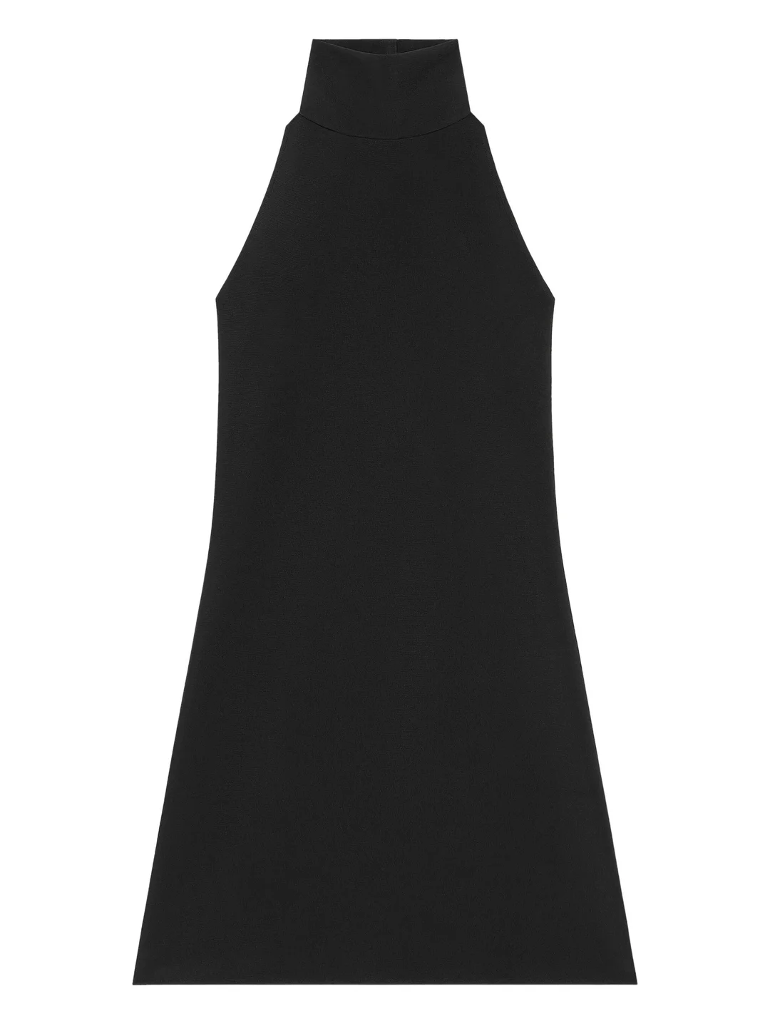 The Courreges Mockneck Jersey Dress delivers modern minimalism with architectural sophistication and streamlined silhouette. Crafted from premium stretch jersey in classic black, featuring the brand's signature clean lines and contemporary cut. The elevated mockneck design and sleeveless construction create a versatile foundation piece for sophisticated styling.