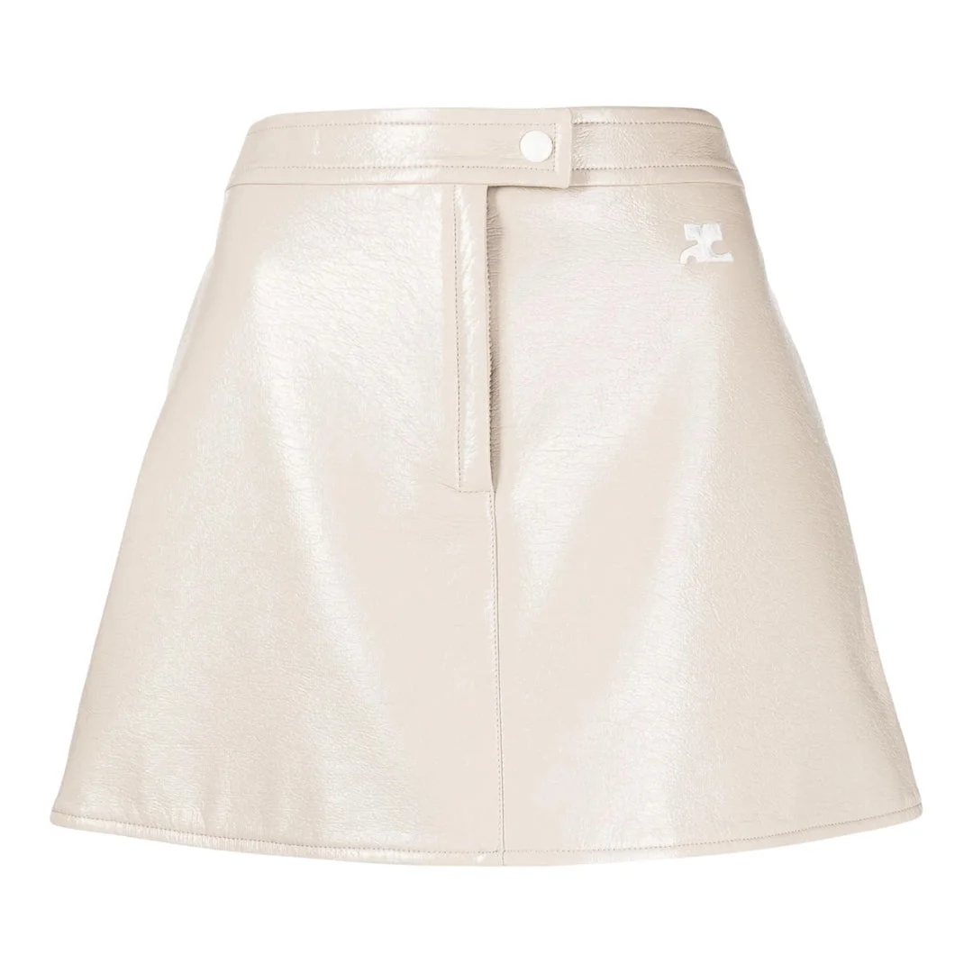 600073070BGE034 / PF25-PERCJU001VY0014/00/9100 - High-quality vinyl construction - A-line mini silhouette - Back zip closure - Structured waistband - Clean minimal seaming - Regular fit The Courreges Vinyl Mini Skirt delivers iconic space-age fashion with futuristic appeal and architectural construction. Crafted from high-quality vinyl in sophisticated cream, featuring clean lines and the brand's signature modernist aesthetic. The structured silhouette and premium vinyl finish create a bold statement piece that embodies Courreges' revolutionary design legacy.