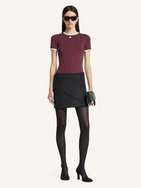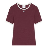 600075044BUR0XS / AW25-125JTS017JS0203/00/B213 - Contrast white ribbed neckline and sleeve trim - Signature Courreges logo embroidery - Short sleeves - Regular fit - Premium cotton construction - Round neckline Courreges Signature Contrast T-Shirt delivers modern French sophistication with iconic design details. Crafted from premium cotton in rich burgundy with contrast white trim throughout the neckline and sleeves. The signature Courreges logo placement and clean architectural lines embody the brand's space-age aesthetic.
